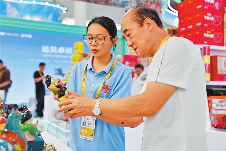 河南“老字号”也尝试通过塑造独特价值,赢得年轻人的心。展馆里,高家三彩、廷怀窑等非遗文创产品颇受青睐。“过去,非遗产品偏传统、受众窄,现在我们把传统工艺与年轻审美相结合,让汝瓷走进日常,更贴近年轻人。”河南省廷怀玉青白胎瓷工程技术开发有限公司总经理张翠芳说。