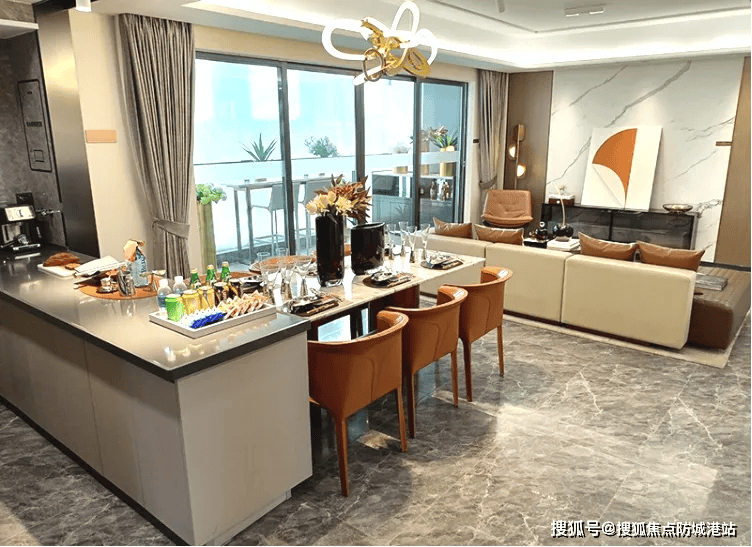 采用LDKB一体化空间设计,将客厅、餐厅、厨房与阳台融为一体,不仅增强了家庭成员间的互动与交流,还提升了空间的通透感与利用率。厨房与餐厅相邻,方便菜品的传递,同时客厅连接超大景观阳台,视野开阔,采光充足。