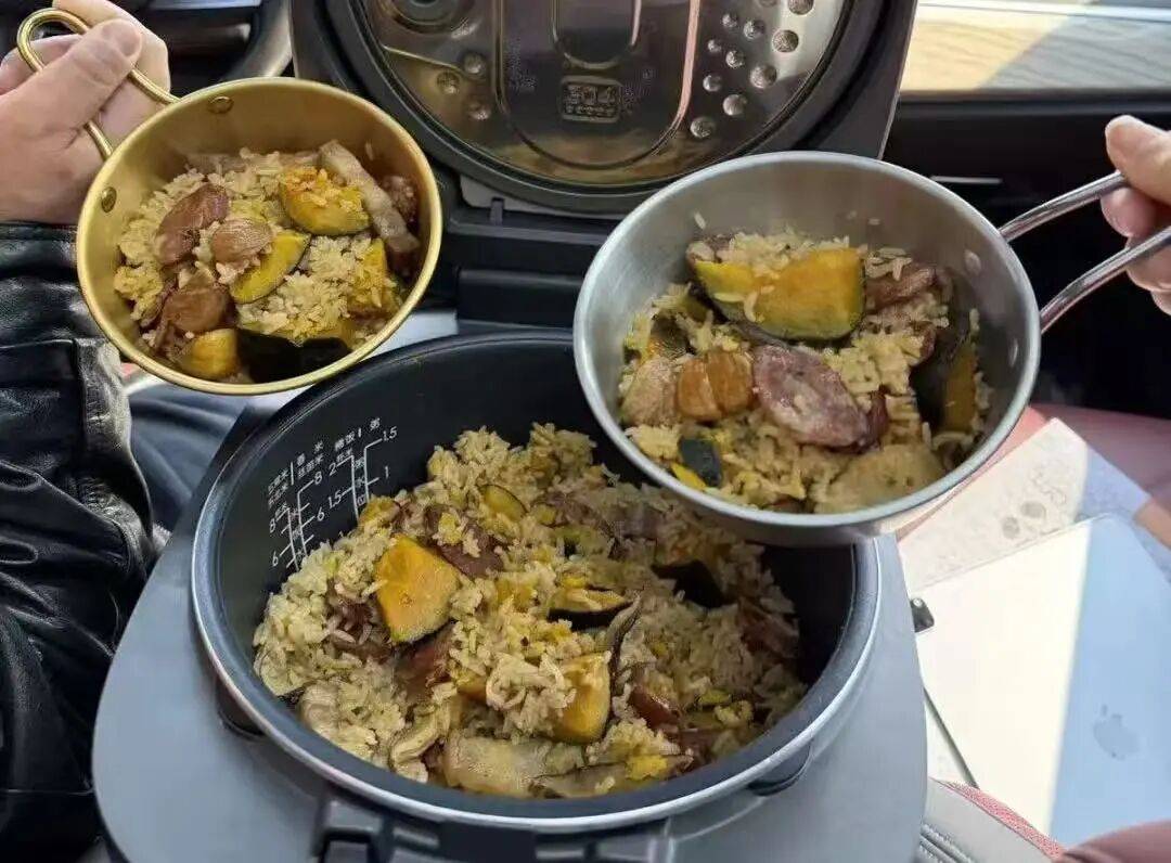 开长途车回家过年,路上饿了怎么办?浙江的黄女士和丈夫带上一电饭煲的美味焖饭,随时可以停车开吃,这一做法得到许多网友的好评。“电饭煲里的饭,四五个小时不会凉。如果怕饭凉了,也可以带着电源线在服务区插电加热,电车还可以直接接电源加热。”黄女士说。