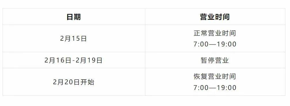 2月16日至2月19日,全市车管窗口、执法窗口暂停对外办公,2月15日、2月20日至2月23日按照周六日时间(9:00—16:00)对外办公。2月14日(星期六)、2月28日(星期六)按照日常工作时间(8:30—18:00)对外办公。已进驻市、区政务服务中心的车管窗口,按政务服务中心工作时间执行。