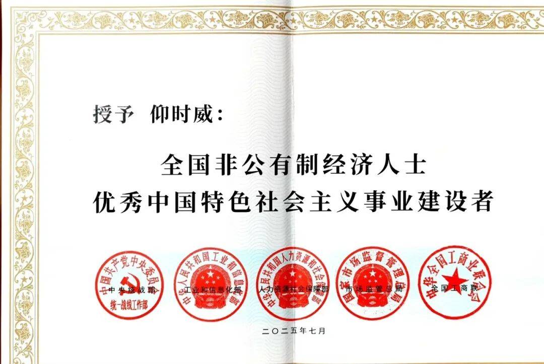 个体工商户仰时威荣获“优秀中国特色社会主义事业建设者”称号,成为全国12名获此殊荣的个体经营者之一,彰显了新时代我县个体经济的发展高度与榜样力量。