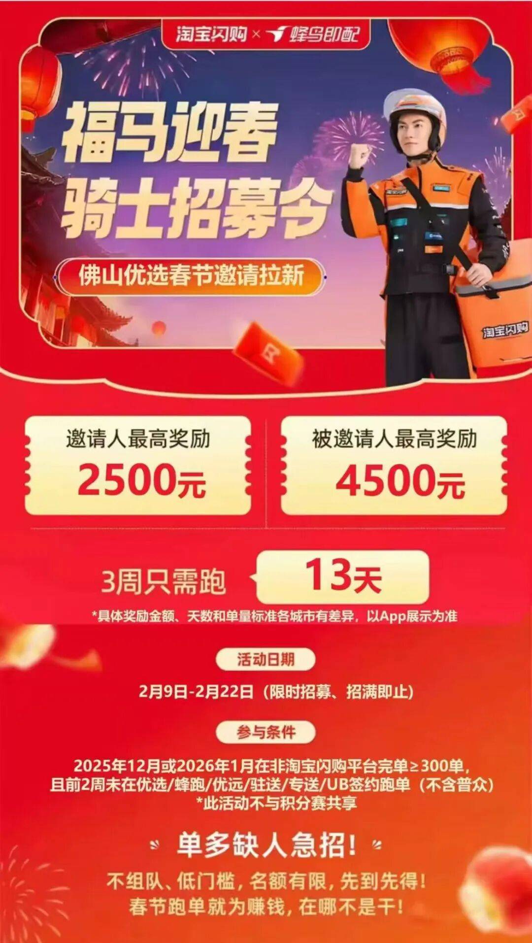 当前,美团针对留岗骑手推出了跑单活动激励、天气补贴、时段补贴和节日津贴等各类现金补助,不同区域留岗骑手可额外获得5000元至10000元不等的跑单津贴。在北上广深等一线城市,除常规跑单收入外,美团的留岗补贴和活动奖金最高超过一万元。淘宝闪购方面也表示,今年春节将投入近20亿元,提前做好运力储备,留岗骑士将比平时至少多收入数千元,一线城市可多挣上万元。