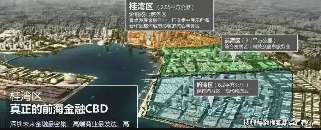 桂湾。桂湾片区深化金融产业的发展,重点发展金融服务业和商务服务业,积极培育新兴业态,推动金融与科技的深度融合,打造具有国际影响力的金融科技创新中心,集中展示前海整体城市形象的核心商务区。桂湾定位为“金融核心商务区”, 未来将打造成对标纽约曼哈顿、伦敦金融城的“国际金融CBD”,是目前前海三湾中建设最快、最成熟的位置。建设已经近8成,同时桂湾也是最靠近宝中,享有的配套也最为成熟。