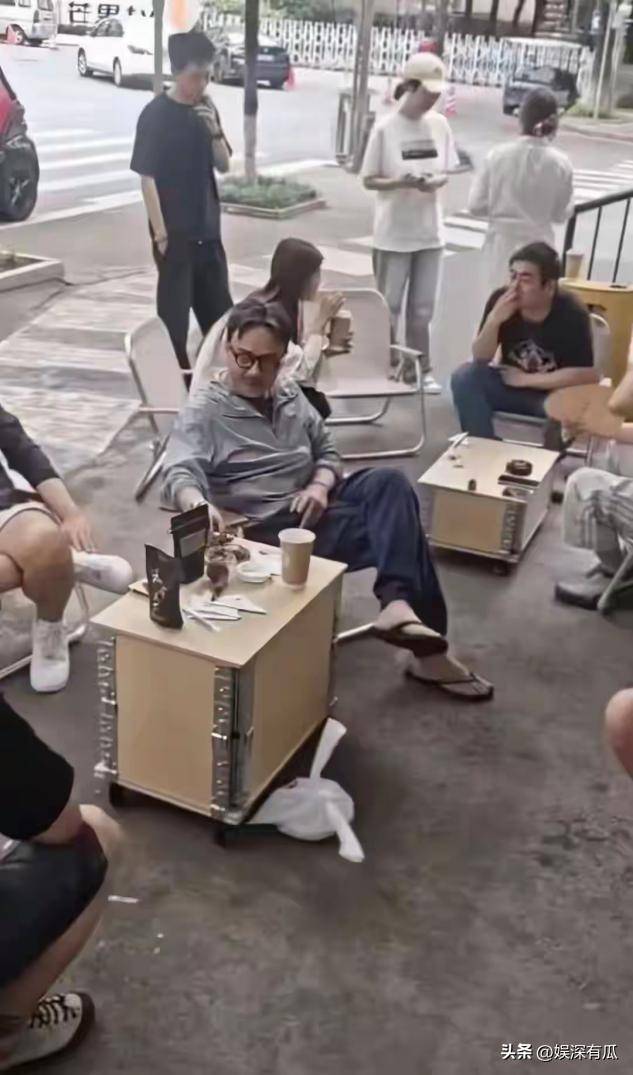 因为照片里的汪涵,不仅穿着一件极为普通的浅灰色休闲上衣,还搭配着一条随处可见的黑青色运动裤。