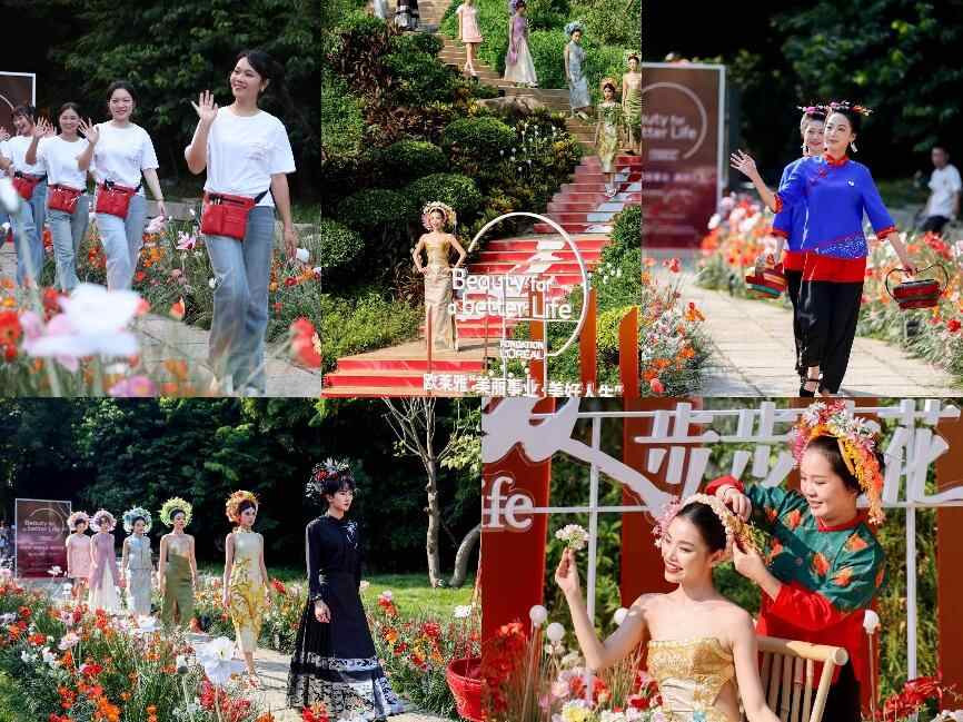 • 传花:大秀尾篇由欧莱雅代表、学员、模特与非遗表演者共同呈现,她们携手装饰象征传承与希望的花网,寓意这份美的力量将持续传递,绵延不息。