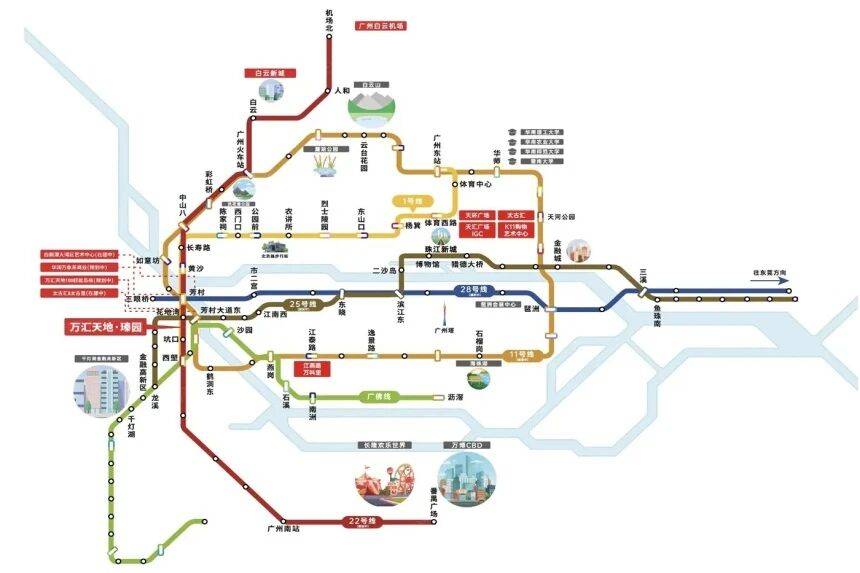 更令人期待的是,未来的25号线开通后,花地湾站将升级为双地铁换乘枢纽。25号线作为广州轨道交通线网中的重要干线,将连接琶洲、天河等多个重点区域。届时,业主可以通过换乘11号线这一“换乘之王”,快速到达广州的各个角落。无论是前往珠江新城上班,还是去琶洲会展中心参观展览,亦或是到天河体育中心健身娱乐,都将变得异常便捷。这种双地铁加持的优势,不仅大大缩短了通勤时间,更极大地拓展了业主的生活半径。无论您身处城市的哪个方位,万科理想花地臻园都能让您轻松抵达,真正实现“全城可达”的梦想。