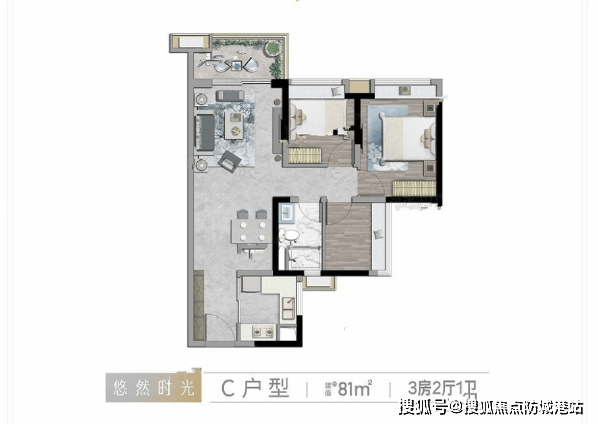 81平方米的三房两厅一卫户型是刚需上车的首选。总价218万起,性价比极高。该户型采用经典的竖厅设计,动静分区合理,U型厨房利用率高,烹饪操作流畅自如。“2+1”灵动空间可根据家庭需求改造为书房或儿童房,增加了空间的灵活性。无论是新婚夫妻还是三口之家,都能在这里找到舒适的居住体验。